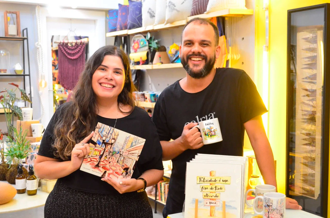 Tássia é publicitária, ama viajar e criou o Instagram @naodeixedeir para compartilhar suas viagens e incentivar as pessoas a viajarem cada vez mais. 😍 Douglas é artista, @estudioha2 e ama pintar aquarelas. Assim surgiu a Lojinha do Não Deixe de Ir, com a mistura dessa amizade e das paixões por arte e viagem! Todos os produtos são exclusivos, feitos à mão e em aquarela. Leve para casa nossos quadros, porta copos magnéticos, canecas e chaveiros, você merece o mundo! Não Deixe de Ir! ✈️